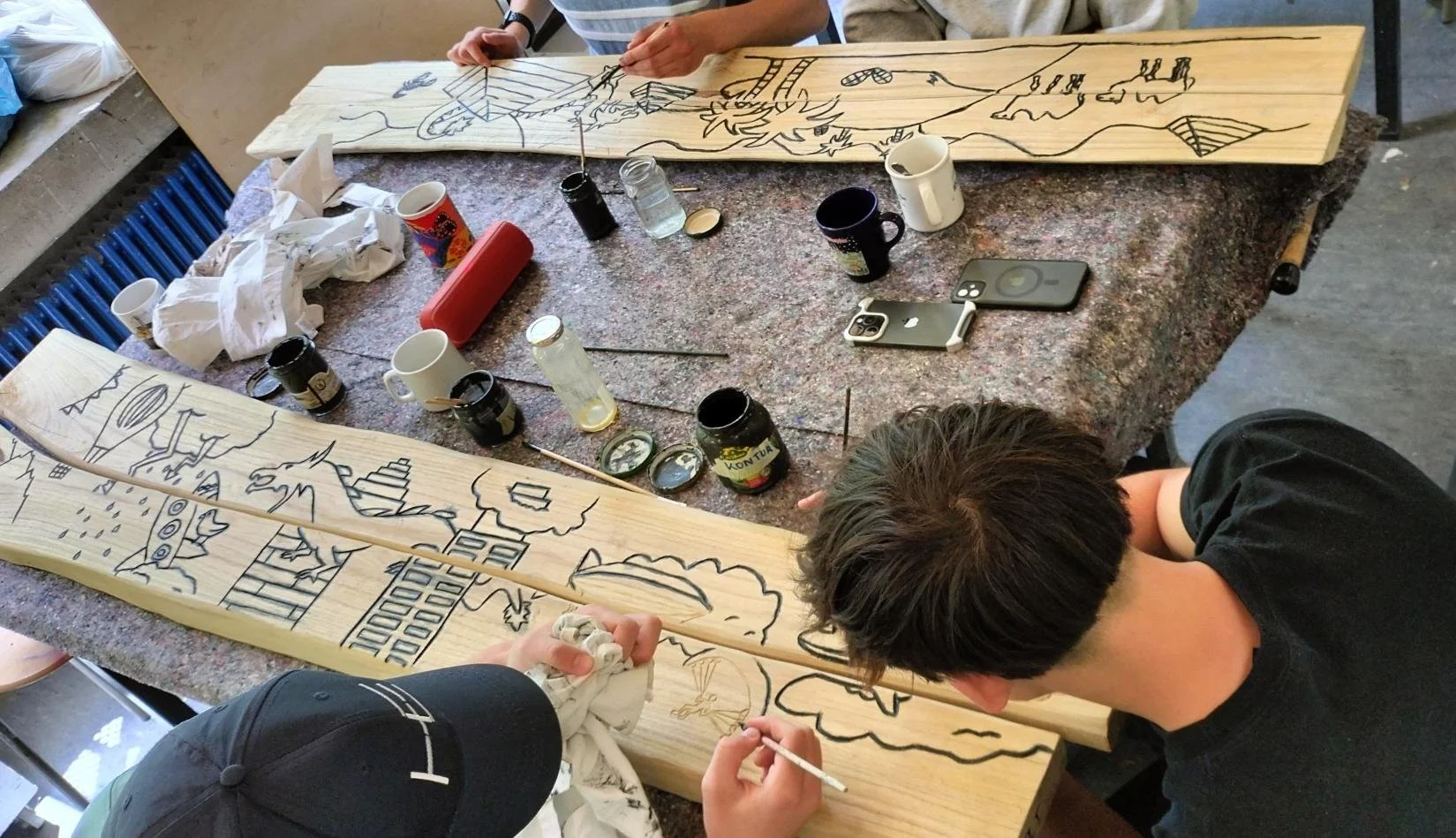 The next morning, something shifted. They split into two pairs - two who enjoyed the work and two who wished they were anywhere else. What amazed me was how they encouraged each other anyway. They put on a playlist that revealed how versatile their music tastes were and soon engaged me in conversation. One of them was really curious about my experience - he even asked if I could play some Polish songs. The other was trying his best to not destroy the wooden board with his carving technique. The third was surprisingly skilled at pretending to work, but spent more time adjusting the playlist. The last one seemed uncertain about his skills, but stayed the most focused and disciplined. His quiet persistence made me hopeful for the group. I did my best to divide my attention equally to keep them all interested and productive.